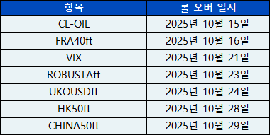 선물 계약의 롤오버 일정은 다음과 같습니다: