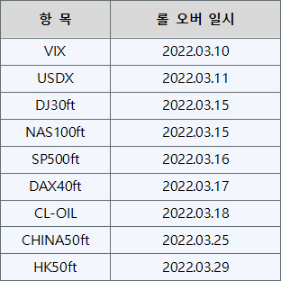 선물 계약의 롤오버 일정은 다음과 같습니다:
