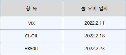 선물 계약의 롤오버 일정은 다음과 같습니다: