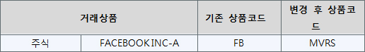 안녕하세요! 미국 주식CFD 상품인 페이스북 (FB)이 메타(MVRS)로 회사명을 변경되었습니다. 이로 인해 PUPRIME에서는 2021년 12월 6일부터는 미국주식 CFD 상품 코드가 변경되어, 메타(MVRS)로 제공됩니다.