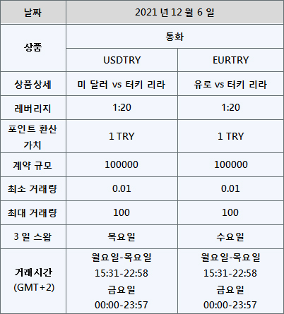 안녕하세요. PUPRIME은 거래 상품 다각화를 위해 2021년 12월 6일에 외환통화쌍 USDTRY 및 EURTRY을 추가할 예정입니다.