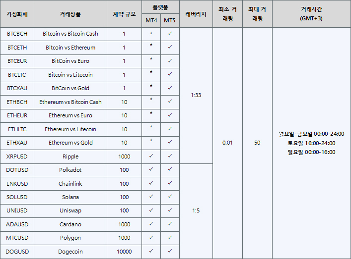 새로운 스왑 조정 방식에 따라 가상화폐 거래 포지션에 대해 해당 일 수만큼의 스왑 이자가 부과됩니다. 기존 가상화폐 상품에 부과되던 방식인 금요일에 3일치 스왑 (금, 토, 일요일 스왑 요금 합산)에서 이번 조정으로 인해 금, 토, 일요일에 개별적으로 계산되어 부과됩니다.