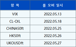 선물 계약의 롤오버 일정은 다음과 같습니다: